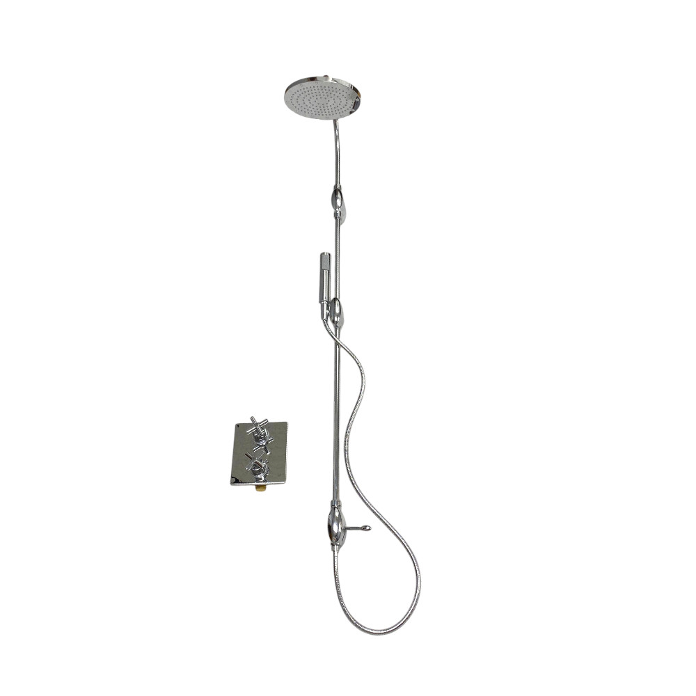 Solid Brass Thermostatic rain head, hand shower, tub spout combo.