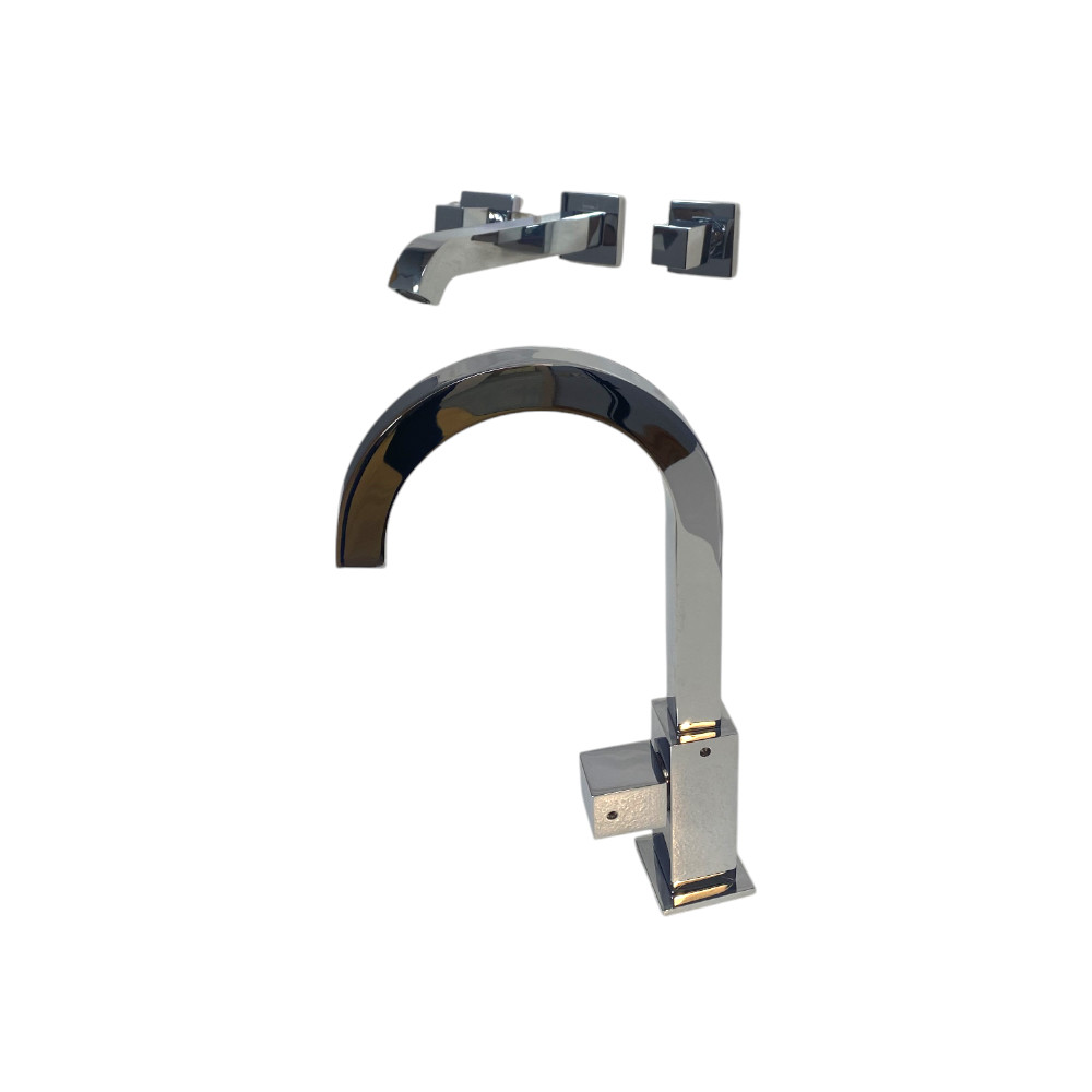 Modern square tub filler and single hole lav faucet combo
